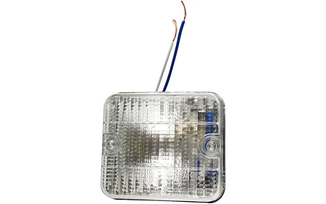 Achteruitrijlicht, met 12Volt 21W halogeenlamp, geschroefde kunststof glasplaat voor lampwissel, 2 M4 schroefdraadschroeven van ca. 18mm lang voor montage aan de achterzijde. Montageschroefafstand 53mm.