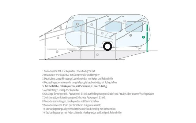 Telescopisch. B.v. voor zonnedaken en zij- en voorwanden. Met schroef, 2- of 3-delig.