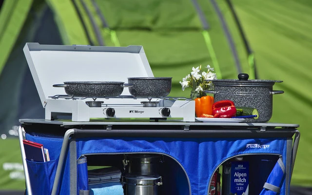 Pannenset van aluminium met graniet-look, met hoogwaardige anti-aanbaklaag. Gemakkelijk te reinigen. De extra grote zeef voor pasta of groente kan ook bij het koken in de pan worden gelaten. Ruimtebesparend stapelbaar. Levering incl.sluitband en greep.